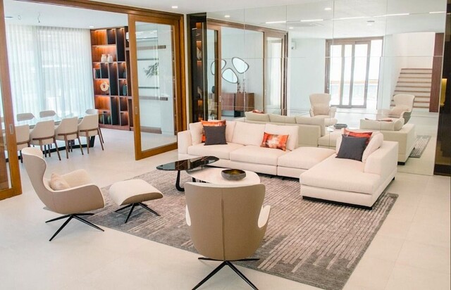 Furniture for living, dining, and key areas